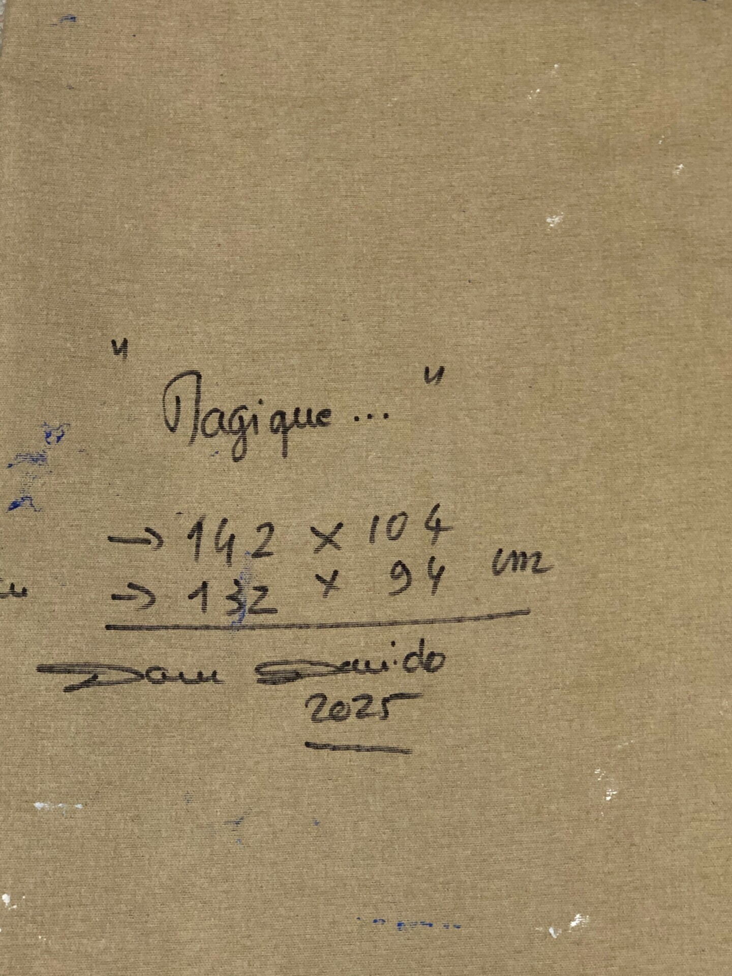 Dimensions totales de la toile : 142 x 104 cm - livrée roulée en emballage adapté et protecteur.